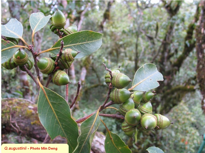 M.Deng & Z.K.Zhou 2005 comb. nov. = Cyclobalanopsis nigrinux and Q. augustini are very close and differ only in having leaves thinner, brown and smooth beneath, neither farinose nor glaucescent in nigrinux, whereas augustini has farinose or glaucescent leaf-undersides. So C. nigrinux may be considered as a variety of Q. augustini; |