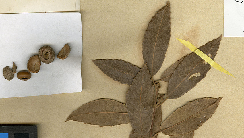 Fruits | acorn subglobose, 1,2-1,3 cm across; mucronate, silky, stongly adherent to half-round cup; solitary on a very short peduncle; cup covering 1/2 or more of nut, with not appressed scales; ripen the first year; |