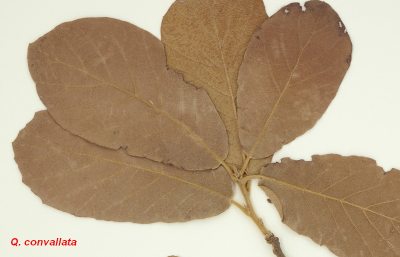 A. Camus : n° 185; -- Sub-genus Quercus, Section Quercus, Series Leucomexicanae; -- Very close to Q. obtusata, but this one has thinner, glabrescent twigs, larger leaves (to 16 cm long), leaves with glandular trichomes abundant beneath, and longer peduncles (1.5-5.5 mm.) -- Ressembles also Q. potosina, but this species may have abundant glandular hairs beneath, scattered glandular trichomes adaxially, the blade never longer than 10 cm, and acorn stalks longer (1.,6 to |