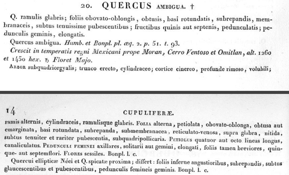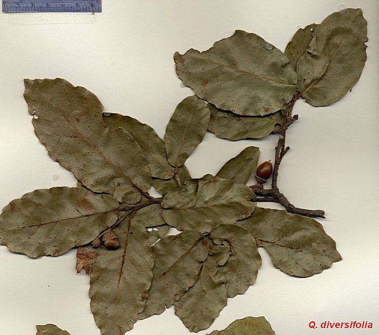 this comment by A. Camus : "species rather dubious"... -- Sub-genus Quercus, Section Quercus, Series Leucomexicanae; -- Threatened (IUCN Red List Category : EN). |