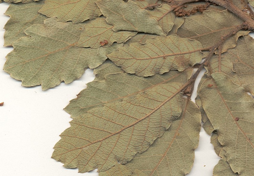 Leaves | 2.5-7 x 1.2-2.5 cm; subevergreen; elliptic or oval-oblong; apex acute ; base cordate ; crenate-dentate on the apical part or subentire on the same twig; adaxially hairless, tomentose beneath; 7-13 veins pairs; petiole short; |