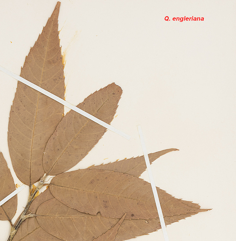 1: 142) is very close to Q.engleriana in its southern range (SE Yunnan, at 1100 m), with larger leaves (15-22 x 6-11 cm) sometimes oboval and with 16-20 vein pairs. Threatened (IUCN Red List Category : CR) |