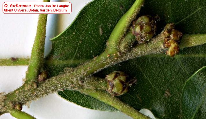 A. Camus : n° 386; -- Sub-genus Quercus, section Lobatae, sub-section Acutifoliae; -- Threatened (IUCN Red List Category : VU). -- Possible confusion with Q. meavei as both have a fulvous tomentum on twigs and petiols, but meavei has nearly glabrous, wider leaves (to 7 cm), longer teeth (2 to 8 mm), 14-19 veins pairs, and the fruit is biennial; -- Ressembles Q. sartorii but can be distinguished by its floccose twigs, petiole and veins, while sartorii has twigs, petiole and veins glabrous or glabrescent; |