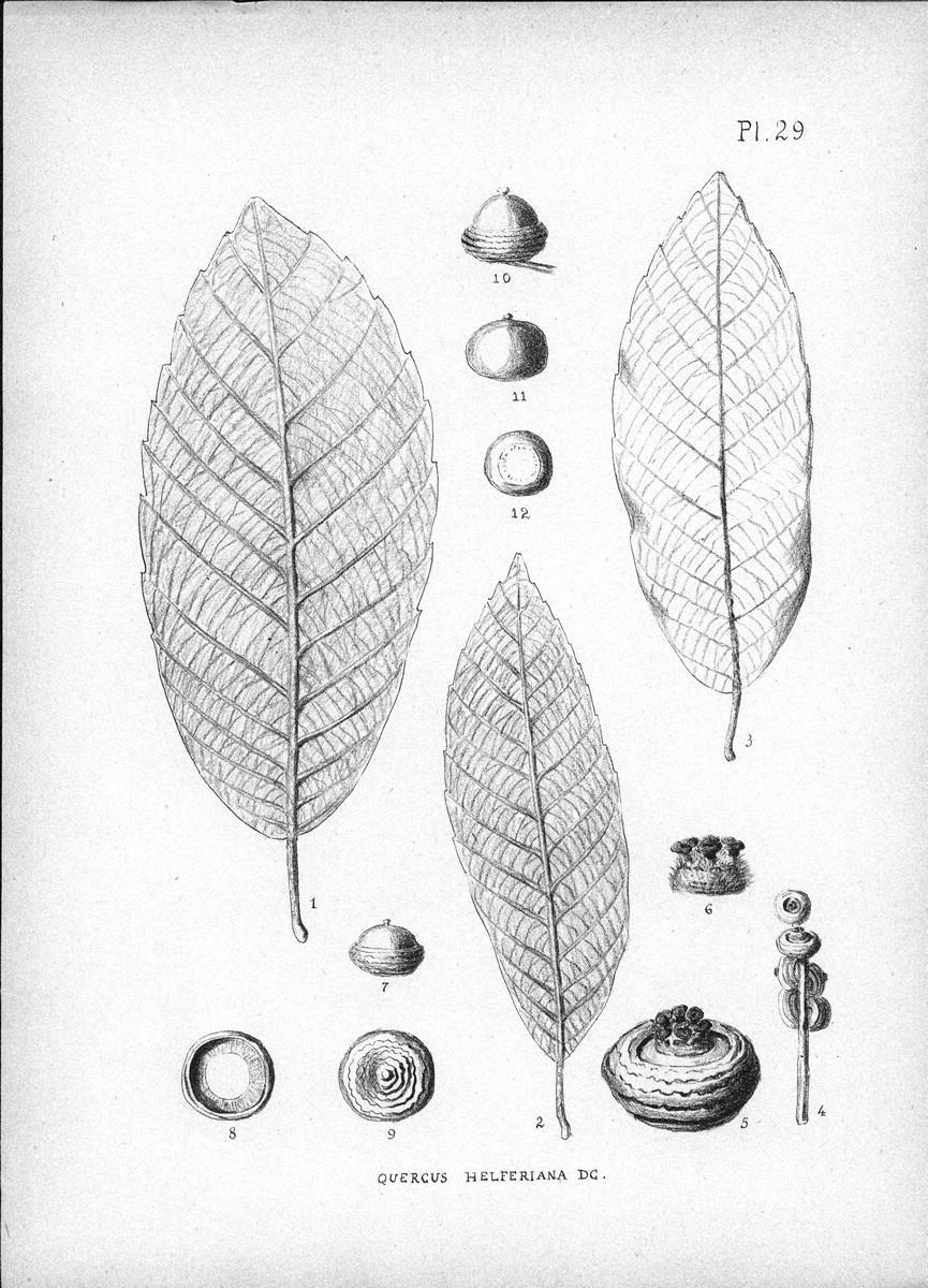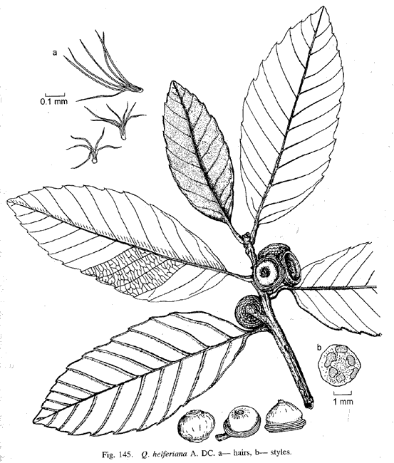 A. Camus : tome 1, p. 336, n° 68; -- Sub-genus Cerris, Section Cyclobalanopsis; -- Section Helferiana, sub-section Helferianae (Menitsky); |