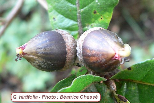 Fruits | acorn 0.7-1.9 cm long x 0.4-1.3 cm in diameter, singly or to 3 together on the tip of a thin, pubescent peduncle to 2.5 cm long; cup halfround with ovate, slightly pubescent scales, ciliate at margin; ripening first year from August to September; |