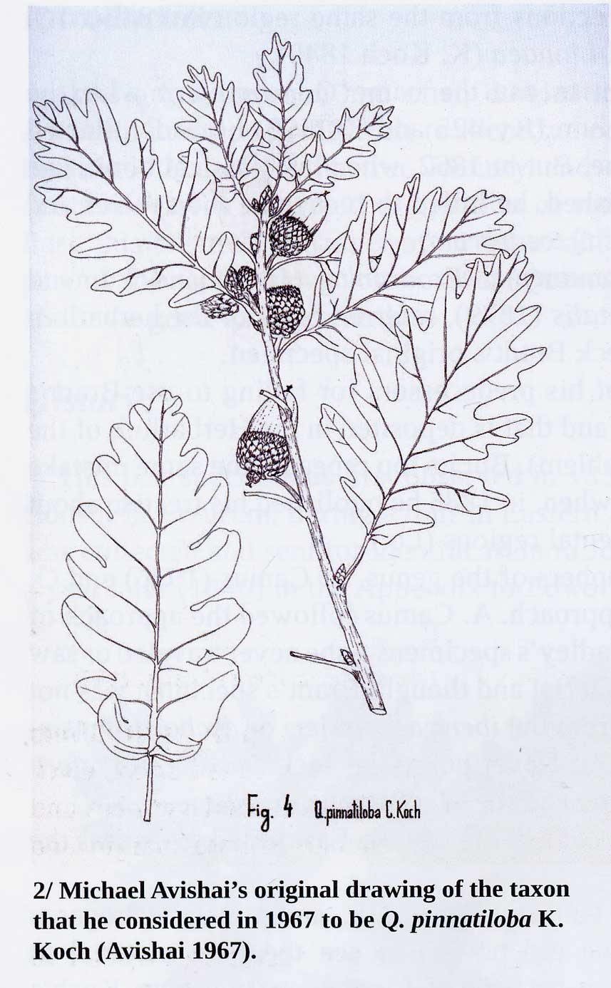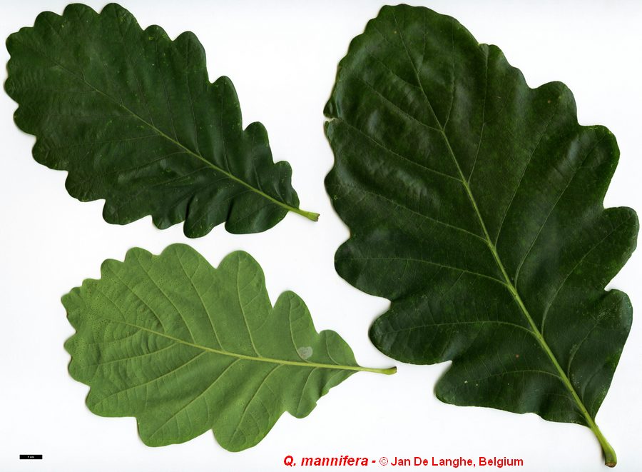158 in A.Camus; -- Sub-genus Quercus, Section Quercus, Series Roburoid; -- The specific name is based on the presence on the leaves of a sugary substance, "manna", produced by action of aphids. -- This taxon had often been, in the past, considered as a hybrid, mostly with Q. boissieri and Q. iberica, but recent works (M. Avishai) enabled to clarify its taxonomical rank. |
