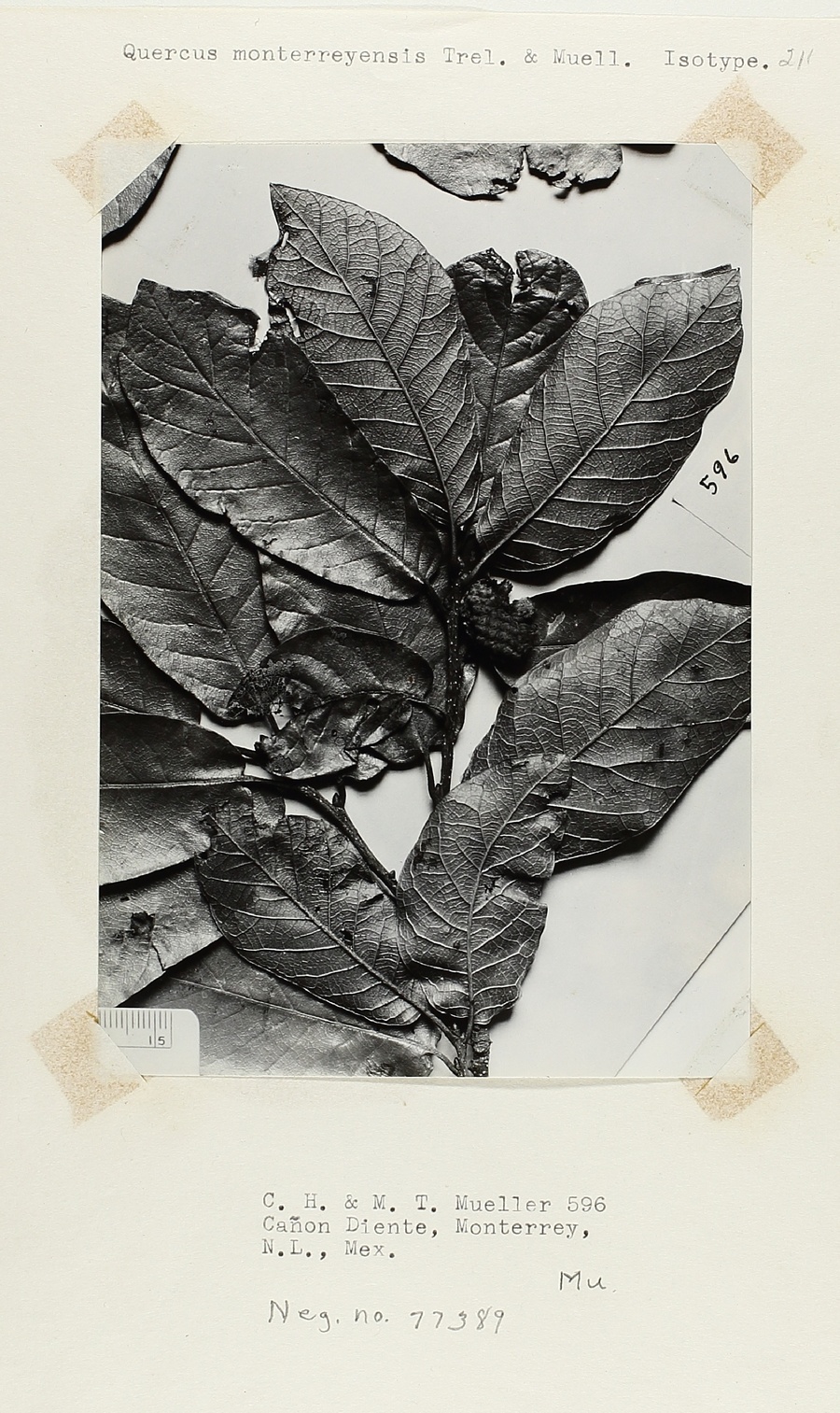 Miscellaneous | -- A. Camus : n° 209; -- Sub-genus Quercus, Section Quercus, Series Leucomexicanae, Group Aurantiacae; -- Not well known; the name comes from Monterrey, city of Mexico (not from Monterey in California); -- For Govaerts, 2007, it is a synonym of Q. tuberculata |
