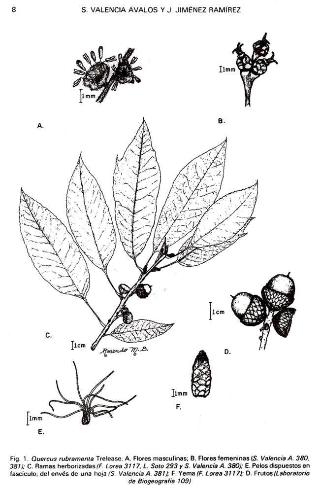 Miscellaneous | -- A. Camus = n° 363; -- Sub-genus Quercus, section Lobatae, Series Erythromexicanae, Group Benthamiae; -- Threatened (IUCN Red List Category : VU). -- Frequently considered as synonym of Q. salicifolia -- For Zavala-Chavez, 2003, it is a variety of Q.conspersa. |
