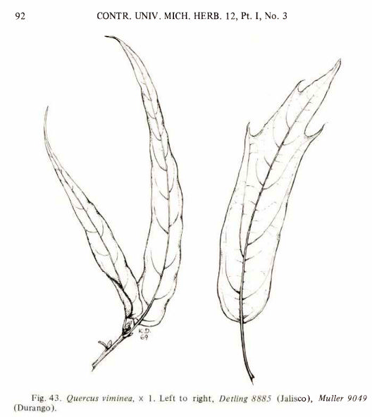 A.Camus : n° 299; -- Sub-genus Quercus, section Lobatae, Series Erythromexicanae; -- The Mexican species Q.bolanyosensis Trel. is sometimes considered as a true species (diagnosis here); |