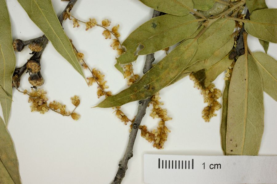 x 0.7-1.5 cm; semi-evergreen; leathery; narrowly lanceolate, fusiform;